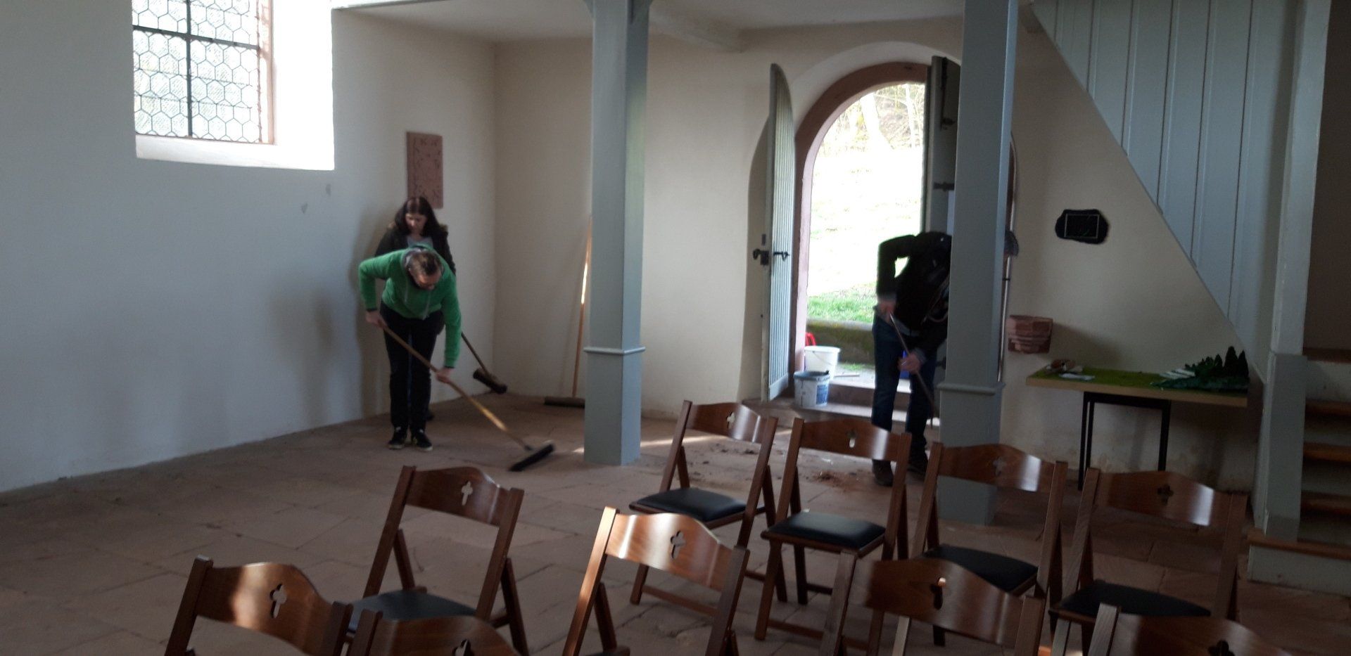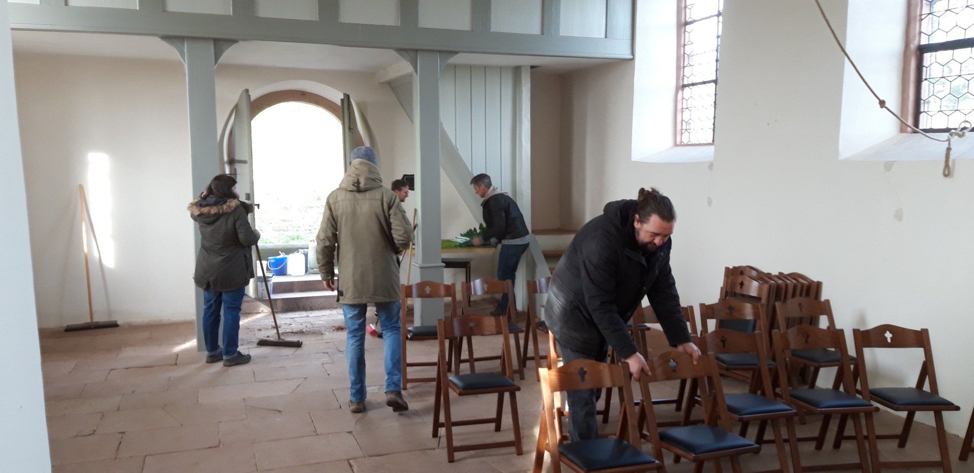 Wie schön und edel unsere neuen Stühle in der Kapelle aussehen, konnten wir schon mal bewundern, als wir neugierig ein paar Stühle mal „probegestellt“ haben, um ihre Wirkung zu testen.
