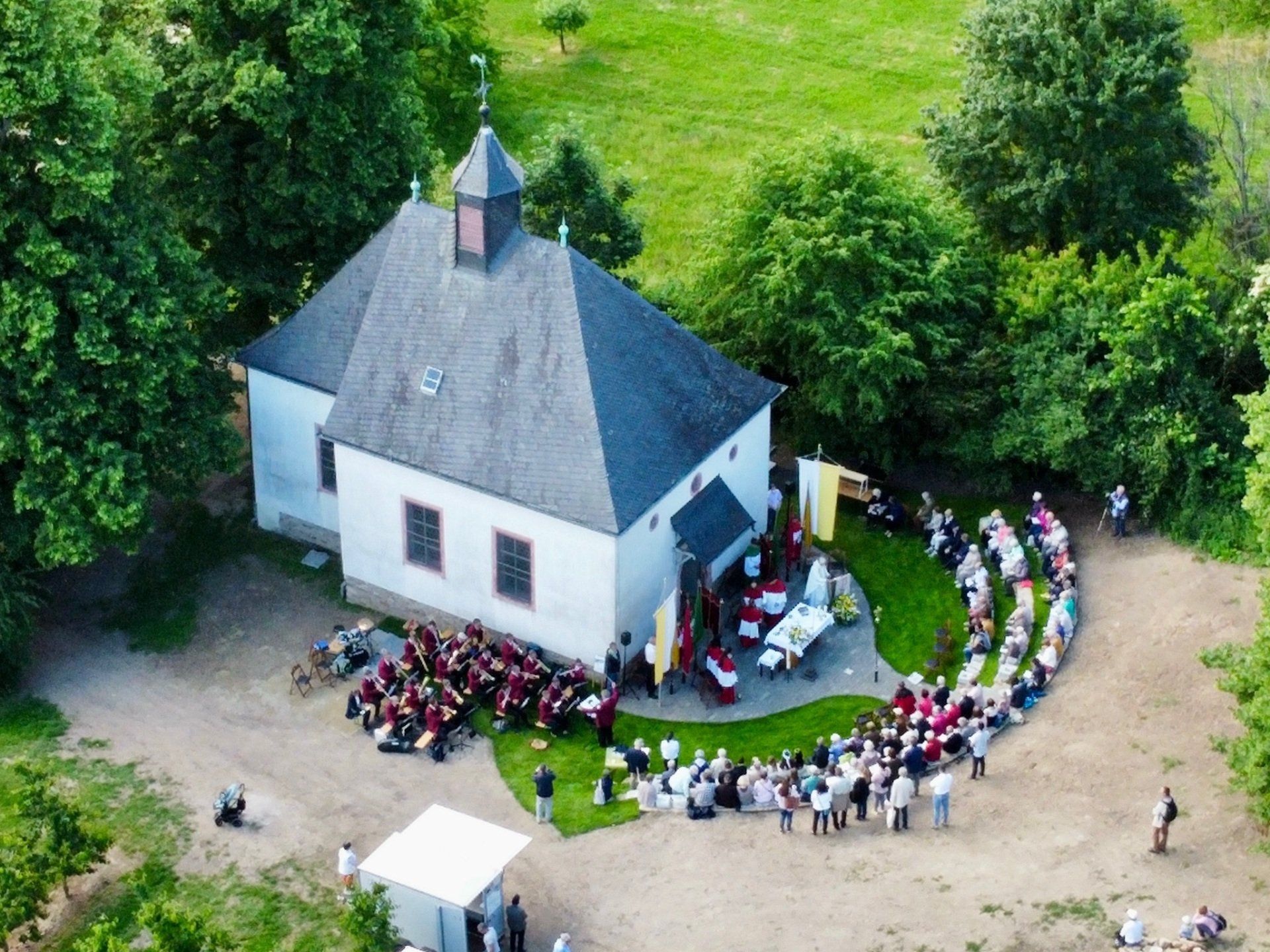 Mit einem großen Fest an Christi Himmelfahrt ist die neugestaltete Außenanlage der Hollerkapelle eingeweiht worden. Zunächst fand am Vormittag der traditionelle Himmelfahrtsgottesdienst statt, in dessen Verlauf